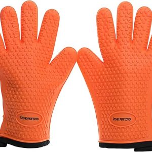 KITCHEN PERFECTION Silicone Smoker Oven Gloves -Extreme Heat Resistant BBQ Gloves -Handle Hot Food Right on Your Smoker Grill Fryer & Pit | Waterproof Oven Mitts-One Size Fits Most-Orange