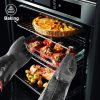 • EASY TO CLEAN AND STORE-No matter how sticky or greasy they get,the non-slip and waterproof GRILL gloves easily wash clean by hand or in the dishwasher.The large hanging hole make the gloves easily to store and dry.And you can hang it up easily with inside loop