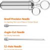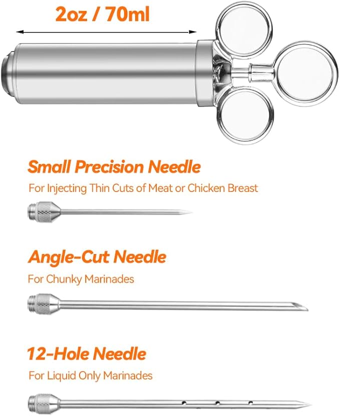 - Versatile Needles: The Brigii Food Injector Syringe Kit comes with three different types of injection needles, including a small precision needle, an angled needle, and a 12-hole needle, catering to various marination needs for different dishes and ingredients.
