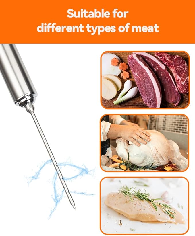 - Flavor-Injecting Delight: Elevate the taste of your meats, such as turkey or steak, by using the Brigii Meat Injector Syringe to inject marinades, making them juicier and more flavorful. Perfect for prepping meats for marination and grilling.