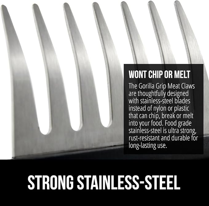 - EXTRA SHARP STAINLESS STEEL MEAT SHREDDER CLAWS: unlike other brands with plastic claws, ours are constructed from 100% stainless steel that is extra sharp for effortless shredding without multiple passes; stainless-steel is a more superior choice than plastic that may chip or break in use