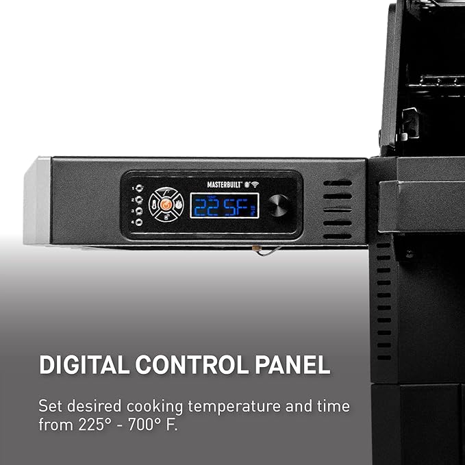 - DIGITAL CONTROLS AND WIFI TECHNOLOGY – Control your barbecue grill and smoker from anywhere with Masterbuilt’s WiFi technology. Set your desired grilling temperature on the digital control panel or by using the Masterbuilt app.