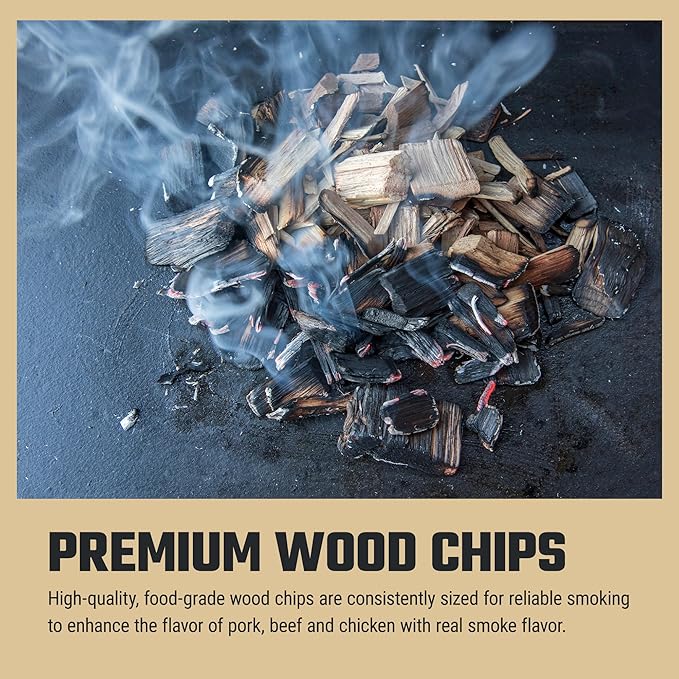 - PREMIUM WOOD CHIPS: High-quality, food-grade wood chips are consistently sized for reliable smoking to enhance the flavor of pork, beef and cheese with real smoke flavor.