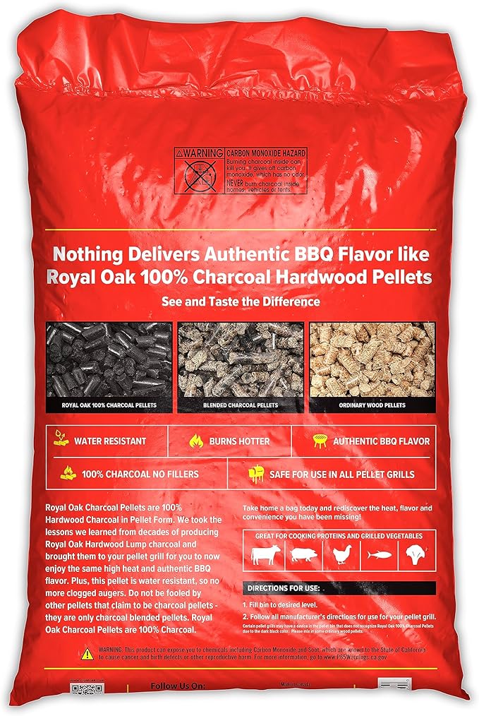 - REAL CHARCOAL: Royal Oak 100 Percent Real Hardwood Charcoal Pellets sear in authentic barbecue flavor when grilling or smoking