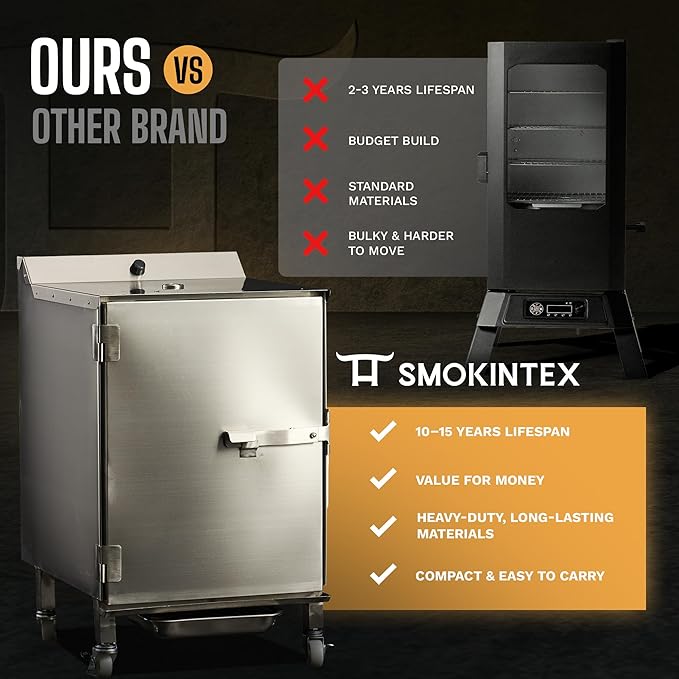 SmokinTex ‘The OG’ Electric Smoker – Spacious & Insulated Stainless Steel Meat Smoker with 700W Heating, & Temperature Control for BBQ, Jerky, Vegetables