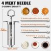 - Easy to Use & Dishwasher Safe: Ergonomic threaded design, easy to assemble or dismantle. 2-oz large capacity injection barrel minimizes refills; plunger handle offers a comfortable grip and friendly pressure control; 4 interchangeable turkey needles multi-holes for deep penetration and sauce distribution, like chunky marinades or liquid brine