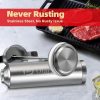 - LEAK-PROOF & HEAVY DUTY for YEARS: Culinary stainless steel metallic (heavier feeling by hand); sturdy meat injector needles, easily to pierce the toughest cuts of meats or poultry; silicone basting pastry brush working well in high cooking grilling temperature range