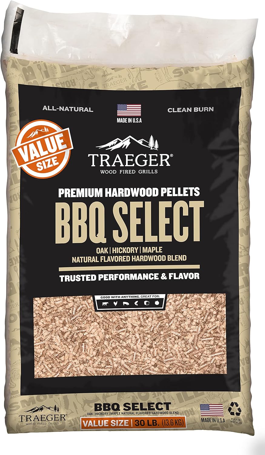- BBQ Select Wood Fired Flavor: Blend of oak, hickory and maple hardwood