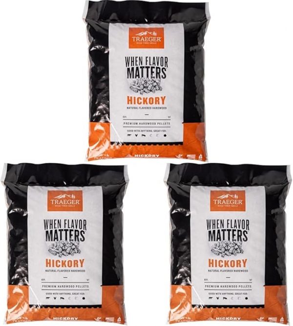 - HICKORY WOOD FIRED FLAVOR: Traeger Hickory Hardwood Pellets are great for naturally enhancing beef, chicken, pork, and veggies with full-bodied, bold flavor. So it should come as no surprise that Hickory’s assertive flavor is one of the most popular choices for classic BBQ cooking.