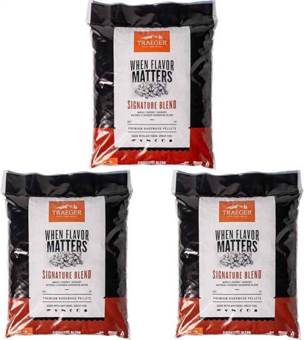 - SIGNATURE BLEND WOOD FIRED FLAVOR: The flavors of hickory, maple, and cherry hardwoods combine for in our Traeger Signature Blend Hardwood Pellets for flavor that can take on just about anything you cook; From classic BBQ meats, to fish and veggies, this versatile blend gives you full-bodied flavor you’ll go back to time and time again